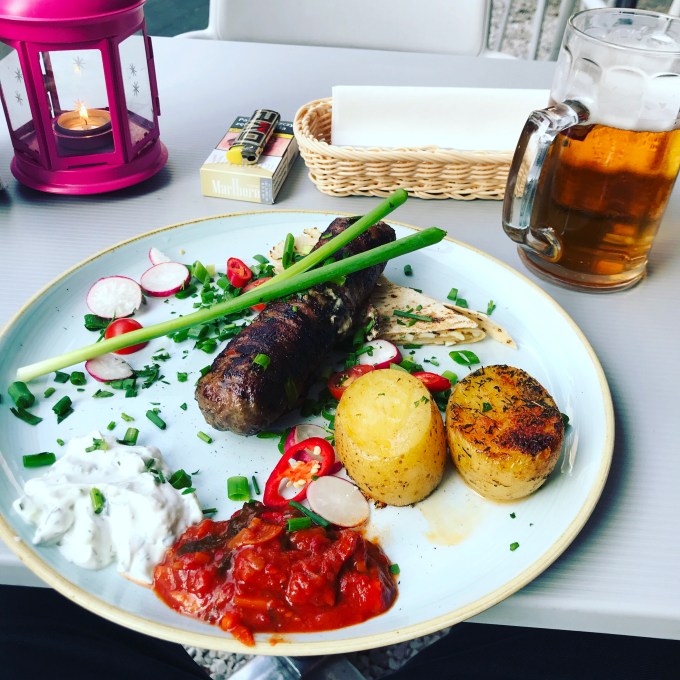 My main I couldn’t tell you, it was a home made Sausage wrapped in bacon, it was very salty and was also served with a Yoghurt and paprika style sauce and finished with 2 baked potatoes. The salty flavours of the sausage was not my forte but i finished it as I hadn’t eaten all day.