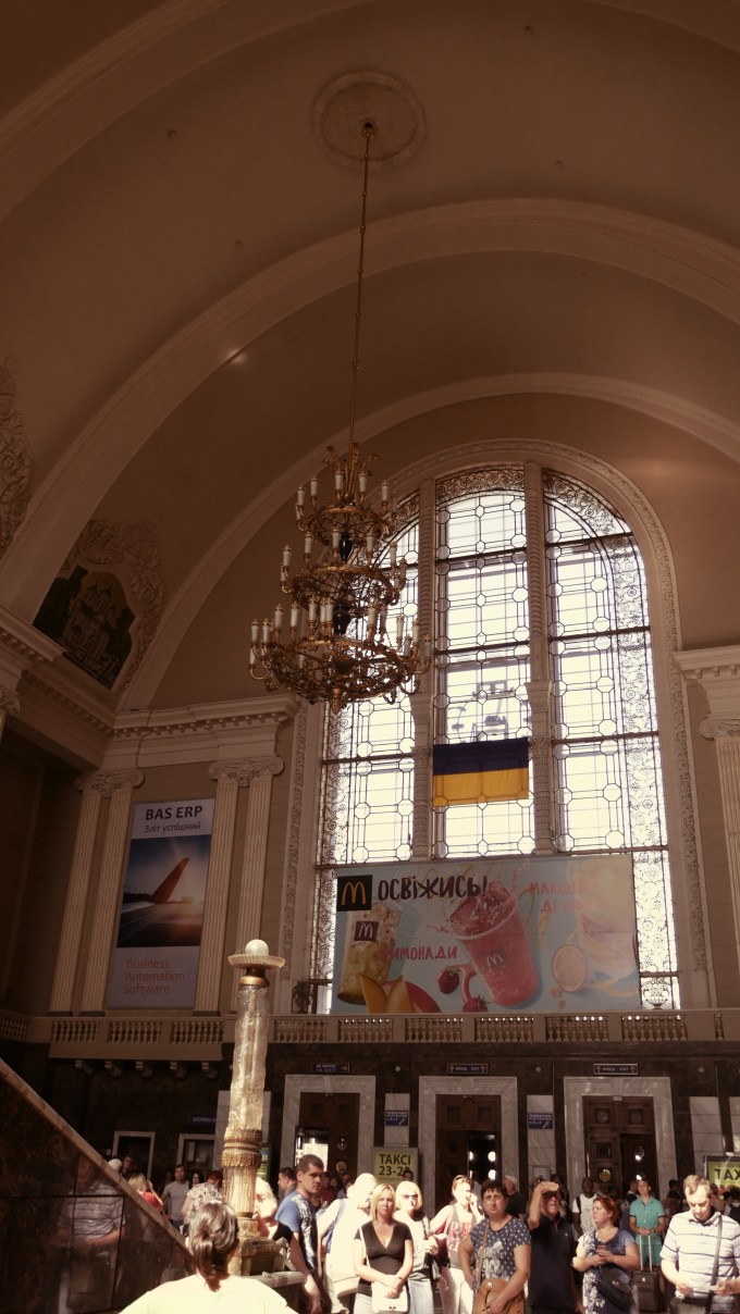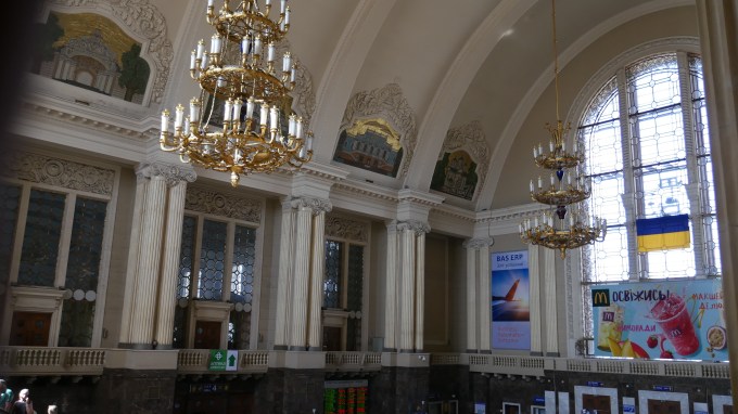 The train station is not what i would call a Russian masterpiece but it has a level of beauty to it that displays communist power and pride, the roof and chandeliers were covered in gold detailing that was subtle yet still reminded the people of there past connection with the criminalistics government, the building has about 500 people mulling around the marble staircases ad departure boards, David quickly navigated to the departing train board and soon found trail 673, heading to Odessa was leaving on platform one, easy to find as the departure board was located right next to the 1st Platform.