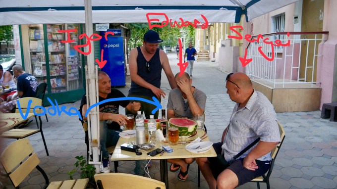 Sergei looks at us and says “you join for vodka!” We look at each other and think… why not, we pull up our seats and introduce ourselves… the language barrier was thick… we couldn’t get thorough so after a few taps on the mobile we managed to get a Russian keyboard on the phone and google translate working, they wanted to know about our travels and where we are from.