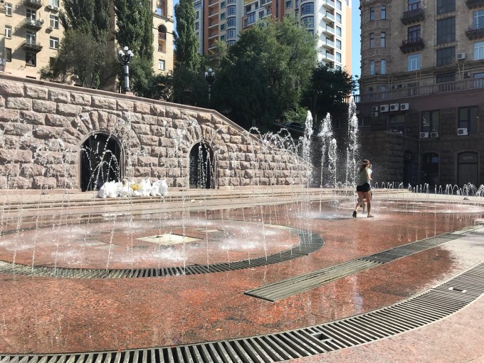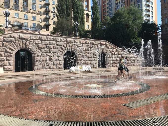 On the way we come to a water fountain that is recessed in granite stone and German 2 decides that seeing how it is so hot and we are all feeling uncomfortable that running through the fountain might be an ideal way to cool off, naturally spontaneous ideas are generally the best and i jump at the opportunity!
