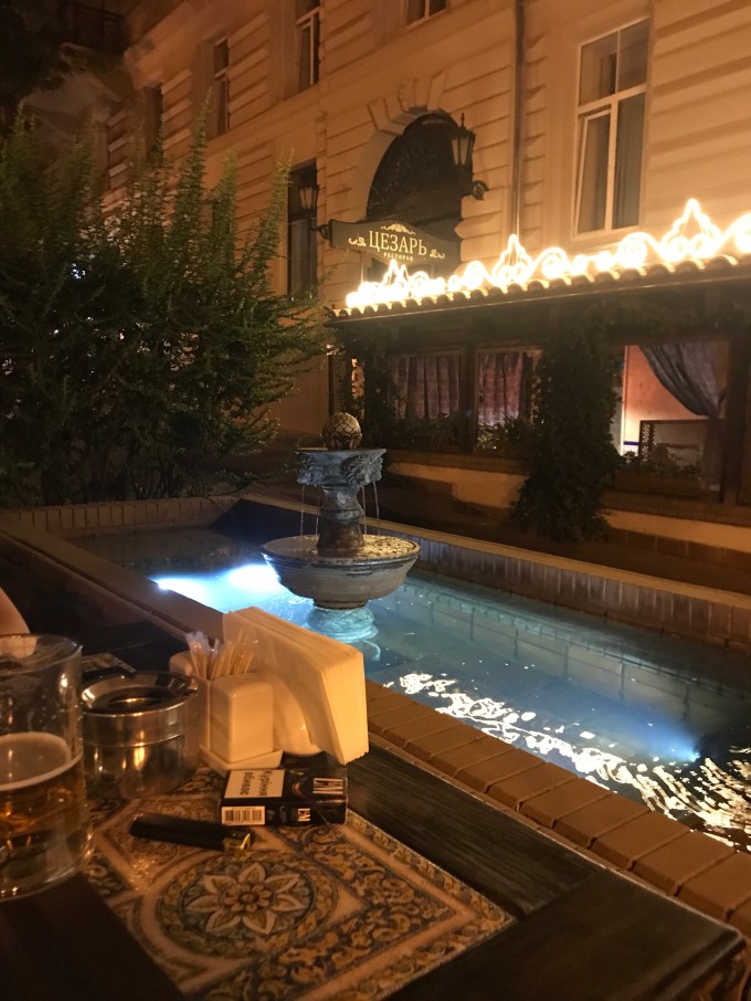 The restaurant was only about 500 meters away from the hostel and as we walked up the final meters on google maps to the door of the restaurant it looked nice , an older lady played the piano in the Odessa moonlight and there was a nice water fountain to accompany here… little did we know that the 2 worst tourists in Odessa would get the wrong restaurant…. Black pepper was next door down a stair case.