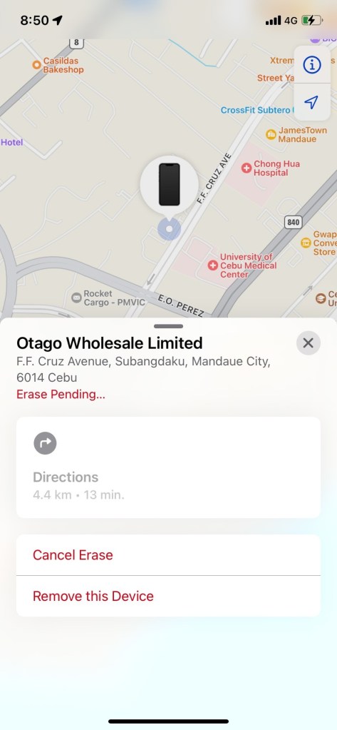 The great think with Apple is the device is now locked and pending remote to erase so as soon the Meth head who decided he needed a unusable phone and boots it up to a Wi-Fi network it should be rendered useless…. hopefully